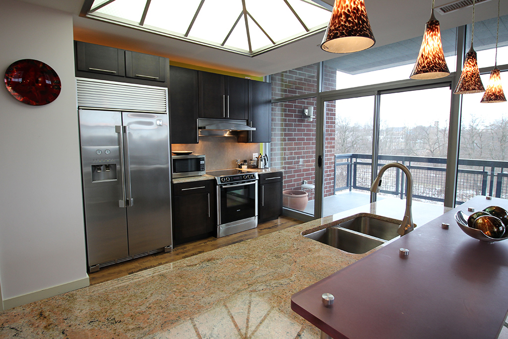 Want to live like a celebrity? Here is your chance! Look no further than founding member of The Pretenders, Chrissie Hynde’s custom loft! The exposed concrete, vinyl wood flooring & brick walls boasts an industrial yet refined style. Bosch stainless range, new granite countertops and pseudo skylight make this rock star kitchen a must have. The tremendous windows in the great room provide splendid sunlight and views for miles of the Cuyahoga Valley National Park. The master bedroom has a private balcony, magnificent walk-in closet and custom tile shower in the master bath. Becoming a resident you have access to a new fitness room, private limo, and concierge services. Living in downtown Akron’s Art District you are walking distance to the new Speakeasy Craft Cocktail Bar, dba, Luigi’s, art galleries and more! Come live on the edge and see why Northside is the “Cure for Suburbia!”